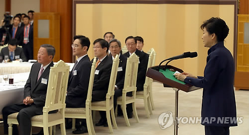 (서울=연합뉴스) 박성민 기자 = 박근혜 대통령이 24일 청와대로 재계 총수들을 대거 초청해 오찬을 함께하며 문화체육 분야 후원 활성화 방안을 논의한다.