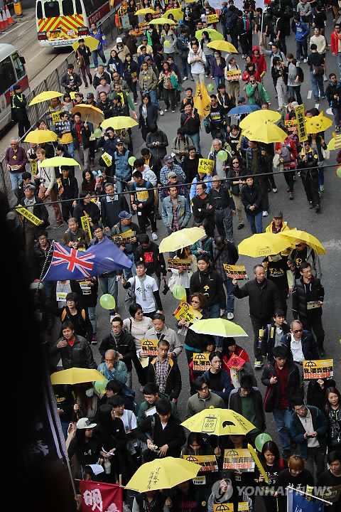 | △ 홍콩서 우산혁명 이후 최대 거리 행진 (홍콩=연합뉴스) 최현석 특파원 = 시민운동단체 민간인권진선은 1일 오후 시민 수천명을 이끌고 홍콩섬 코즈웨이베이 빅토리아 공원을 출발, 센트럴까지 행진하며 '정치적 제한 없는 행정장관(행정수반) 직선제' 실시를 요구했다. 이날 시위는 작년 12월 15일 끝난 79일간의 도심 점거 시위 이후 최대 규모로 기록됐다. 2015.2.1 <<국제뉴스부 기사 참조>> harrison@yna.co.kr |