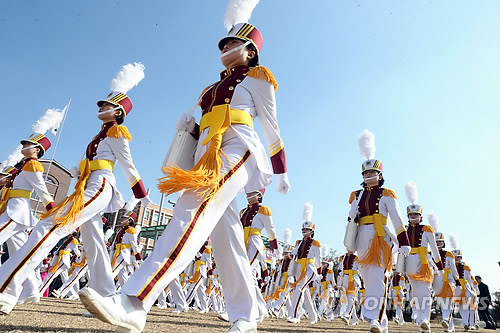 | △ 힘찬 첫걸음 (대전=연합뉴스) 양영석 기자 = 국군간호사관학교 신입생도들이 24일 대전 유성구 자운대 내 사관학교 연병장에서 열린 입학식을 끝내고 연병장을 나가고 있다. 2015.2.24 youngs@yna.co.kr |