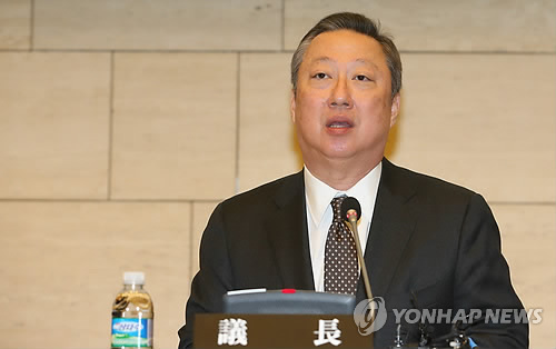 | △ 박용만 서울상의 회장 연임 (서울=연합뉴스) 임헌정 기자 = 박용만 서울상공회의소 회장이 24일 오전 서울 중구 대한상공회의소에서 열린 서울상공회의소 정기의원총회에서 차기 회장으로 연임된 뒤 인사말을 하고 있다. |