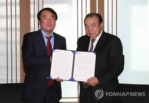 송현승 연합뉴스 사장과 알레한드로 라모스 에스키벨 노티멕스 사장은 24일 서울 종로구 수송동 연합뉴스 사옥에서 기존 영문 기사 외에 스페인어 기사, 영문 캡션 사진 교환을 내용으로 하는 뉴스교류 협정에 서명했다.