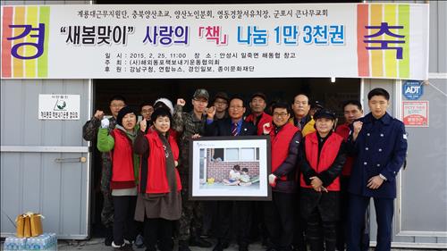 기증식은 이날 안성시 일죽면에 있는 책 창고에서 국군장병과 자원봉사자, 홍보가수 강다영, 배우 하서미 등이 참가한 가운데 열렸다.