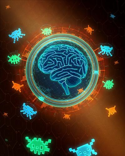 | △ 구글 자회사인 '구글딥마인드(Google Deepmind)'가 개발한 인공지능 게이머 'DQN'을 비디오게임을 배경으로 묘사한 그림. 구글딥마인드 제공. |