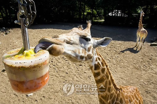 | △ 아이스크림, 마가린 등 많은 가공식품에 첨가되는 유화제가 장(腸)박테리아의 구성에 변화를 일으켜 대사증후군과 염증성장질환 위험을 높인다는 연구결과가 나왔다. 사진은 아이스 크림 먹는 기린. (EPA 연합뉴스 자료사진) |