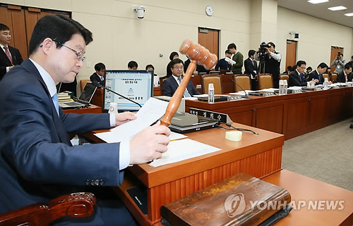| △ 정희수 위원장이 지난 23일 국회 기획재정위원회 전체회의에서 올해 연말정산으로 세금을 더 내는 경우 3개월에 걸쳐 나눠 낼 수 있도록 하는 소득세법 개정안을 통과시키고 있다. |