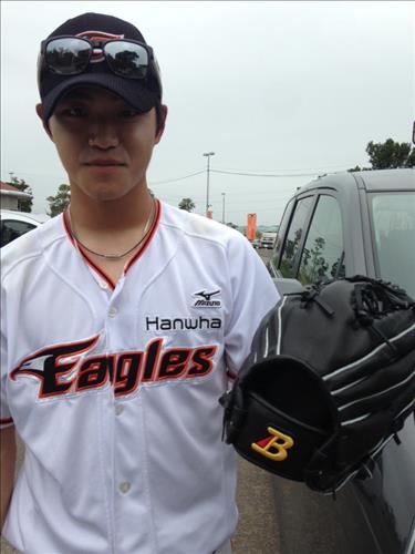 | △ (야에세<일본 오키나와현>=연합뉴스) 고동욱 기자 = 양손 투수에 도전하는 프로야구 한화 이글스의 투수 최우석(22)이 27일 고친다구장에서 양손 글러브를 보여주고 있다. 2015.2.27 sncwook@yna.co.kr |