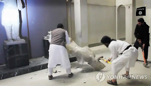 (두바이=연합뉴스) 강훈상 특파원 = 수니파 원리주의 무장단체 '이슬람국가'(IS)가 26일(현지시간) 동영상을 통해 파괴했다고 주장한 이라크 모술박물관의 유물은 대부분 모조품이라는 보도가 나왔다.
