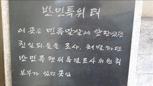 새겨진 글귀를 읽고 나서야 비로소 여기가 광복 후 친일파에 대한 수사와 재판을 담당한 '반민족행위특별조사위원회'(반민특위) 본부가 있던 곳이라는 것을 알 수 있다.