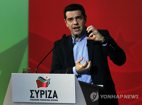 | △ (EPA=연합뉴스) 알렉시스 치프라스 그리스 총리가 지난달 28일(현지시간) 소속당 급진좌파연합(시리자) 중앙위원회에서 연설하고 있다. |