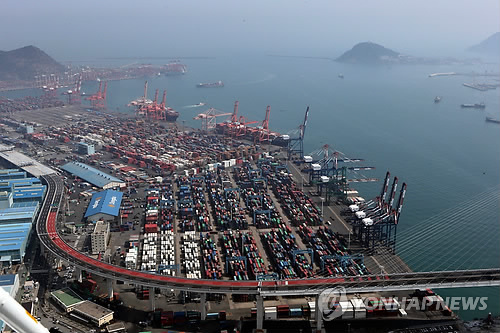 | △ 지난달 조업일수 감소에 유가 하락까지 겹치면서 한국 수출과 수입규모가 전달에 이어 2개월째 동반 감소세를 보였다. 부산 감만부두. (연합뉴스 자료사진) |