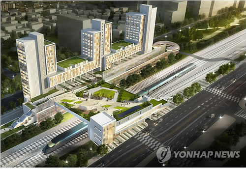 | △ 대학생, 신혼부부 등을 위한 임대주택인 행복주택 1호로 추진되고 있는 서울 가좌 행복주택지구 조감도. (연합뉴스 자료사진) |