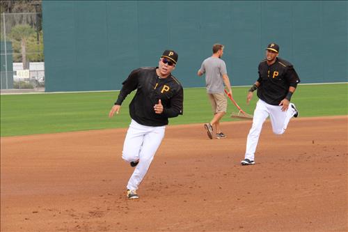강정호는 코리 하트, 그레고리 폴랑코, 스탈링 마르테와 조를 이뤄 타격 훈련을 했다.
