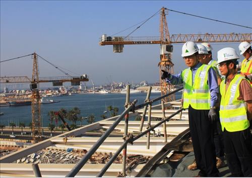 | △ 현대건설 정수현 사장이 최근 카타르 국립박물관 현장을 방문해 현장 안전점검을 하고 있다. (사진제공 현대건설) |