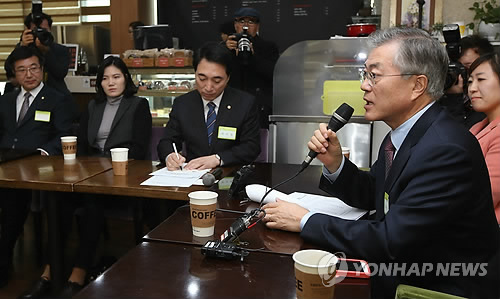 | △ 시민들과 전·월세 문제 이야기하는 문재인 대표 (서울=연합뉴스) 김도훈 기자 = 새정치민주연합 문재인 대표가 2일 오전 서울 은평구 성암교회 내 바오밥나무 카페에서 시민들과 함께 전·월세 문제를 주제로 타운홀미팅을 갖고 있다. |