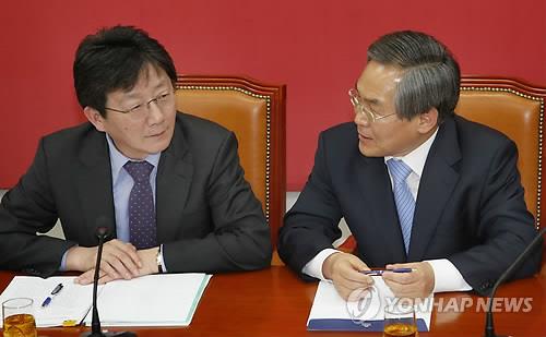 | △ 대화하는 여야 원내대표 (서울=연합뉴스) 이상학 기자 = 새누리당 유승민 원내대표와 새정치민주연합 우윤근 원내대표가 김영란법 처리 등과 관련해 2일 오후 국회에서 회동을 갖고 대화를 하고 있다. |