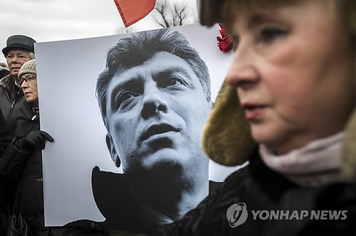 | △ 1일(현지시간) 러시아 상트페테르부르크에서 시민들이 최근 총격 피살된 야권 지도자 보리스 넴초프의 사진을 들고 추모행진을 벌이고 있다. (AP=연합뉴스 자료사진) |