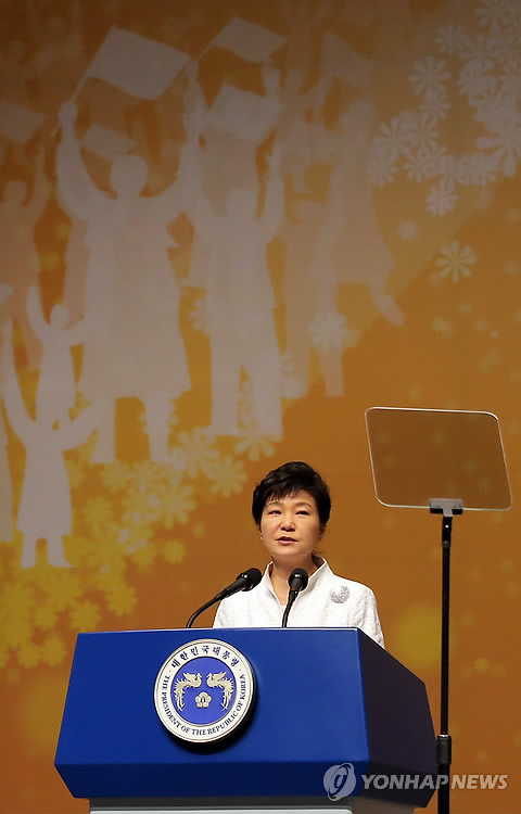 | △ 박 대통령 "한일, 미래 50년 동반자로 새역사 써나가야" (서울=연합뉴스) 이정훈 기자 = 박근혜 대통령이 1일 오전 서울 세종문화회관에서 열린 제96주년 3·1절 기념식에서 기념사를 하고 있다. 2015.3.1 uwg806@yna.co.kr |