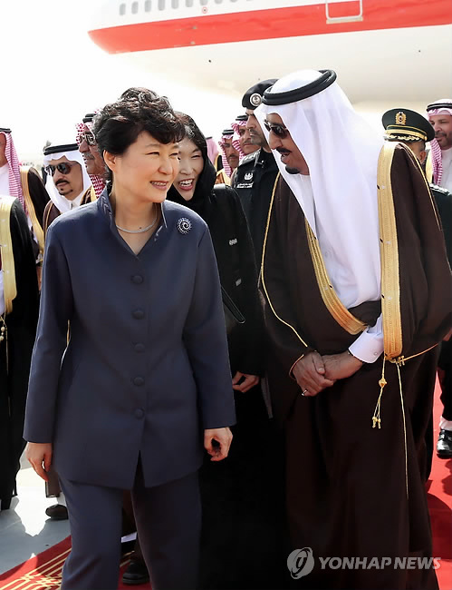 (리야드=연합뉴스) 정윤섭 박성민 기자 = 중동 4개국을 순방 중인 박근혜 대통령은 3일(현지시간) 두번째 방문국인 사우디아라비아 수도 리야드에 안착했다.