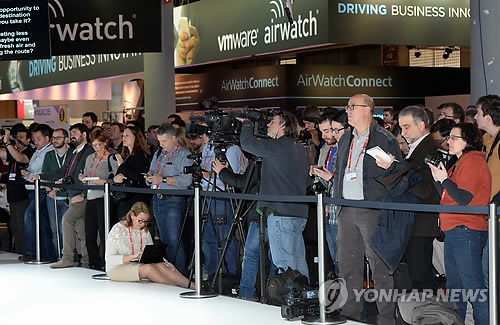 | △ 세계이동통신박람회 MWC2015 (바르셀로나 사진공동취재단=연합뉴스) 스페인 바로셀로나에서 열리는 세계이동통신박람회 MWC2015가 2일 개막되어 전세계 IT 관계자들과 언론인등이 업체 홍보관에서 첨단 기술을 살펴보고 있다. 2015.3.2 photo@yna.co.kr |