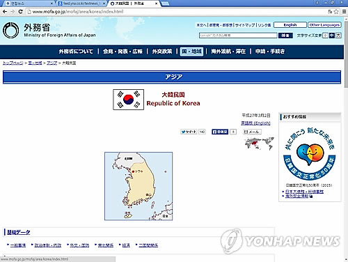 (도쿄=연합뉴스) 조준형 특파원 = 일본 외무성은 홈페이지의 한국 소개 내용에서 '자유와 민주주의, 시장경제 등의 기본적 가치를 공유한다'는 표현을 삭제했다.