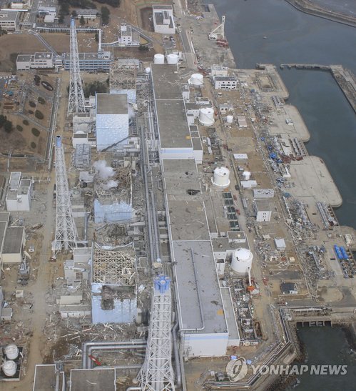 | △ (AP/에어포토서비스=연합뉴스.자료사진) 2011년 대지진과 쓰나미로 심각한 타격을 입은 일본 후쿠시마 제1원자력발전소를 사고 20여일후 공중에서 내려본 모습 |
