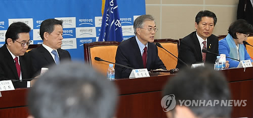 | △ 문재인 전북서 최고위원회의 주재 (전주=연합뉴스) 최영수 기자 = 문재인 새정치민주연합 대표가 4일 오전 전북도청에서 현장 최고위원회의를 주재하고 있다. |
