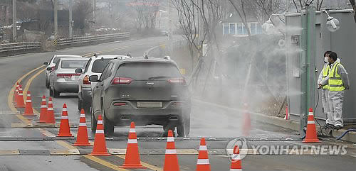 | △ 방역당국이 차량 소독을 하는 모습.(연합뉴스 자료사진) |