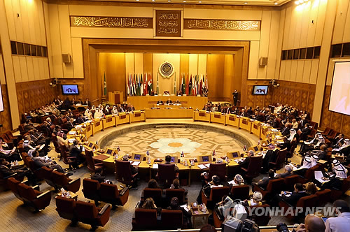 | △ (EPA=연합뉴스) 14일(현지시간) 이집트 카이로에 있는 아랍연맹 본부에서 아랍연맹 외무장관들이 회의를 하고 있다. 이스라엘의 팔레스타인 가자지구 공격이 7일째 이어지면서 희생자 수가 186명까지 치솟은 가운데 이날 이집트 정부는 세계표준시 기준 15일 오전 6시를 기해 휴전하라고 이스라엘과 하마스 양측에 제의했다. EPA/KHALED ELFIQI |