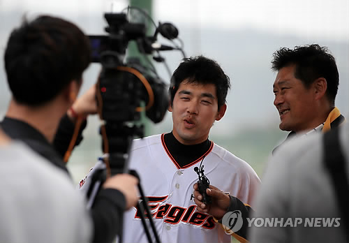 | △ 마이크 잡은 바람의 아들 (야에세<일본 오키나와현>=연합뉴스) 홍해인 기자 = 바람의 아들 이종범이 2015년 MBC스포츠플러스 해설위원으로 새 출발한다. 이종범 위원이 2월 27일 일본 오키나와현 야에세 고친다구장에서 이용규와 인터뷰하고 있다. hihong@yna.co.kr |