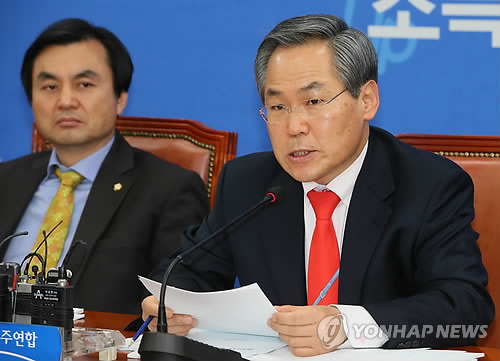 | △ 모두발언하는 우윤근 (서울=연합뉴스) 진성철 기자 = 새정치민주연합 우윤근 원내대표가 5일 국회에서 열린 정책조정회의에서 모두발언하고 있다. |