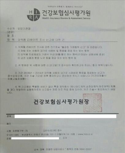 심평원 관계자는 "누가 어떤 목적으로 심평원 사칭 문서를 보냈는지는 아직 알 수 없다"며 "자격도용 공문서 작성죄로 형사고발할 예정"이라고 밝혔다.