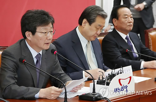 | △ 피습사건 발언하는 유승민 원내대표 (서울=연합뉴스) 이상학 기자 = 새누리당 유승민 원내대표가 5일 오전 국회에서 열린 최고위원회의에서 마크 리퍼트 주한미국대사 피습 사건 관련 발언을 하고 있다. |
