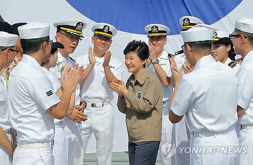 박 대통령이 이날 승선한 대조영함은 청해부대 17진을 태우고 2014년 10월부터 소말리아 해역에서 임무를 수행했고, 임무교대를 위해 도착한 청해부대 18진의 왕건함도 행사에 함께했다.