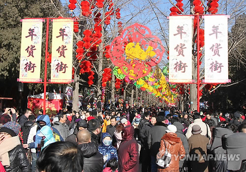 | △ 춘제(春節·설) 연휴를 맞아 중국 베이징 디탄(地檀)공원에 수만명의 시민들이 몰려 인산인해를 이루고 있다. (연합뉴스 자료사진) |