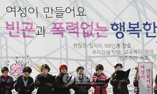 이밖에 비정규직 종합대책안 폐기, 공공부문 여성 비정규직의 정규직화, 성별 임금 격차 해소, 무상보육 및 교육에 대한 국가 책임제 이행, 일·가정 양립정책의 실효성 확보 등의 요구를 담은 결의안을 채택했다.