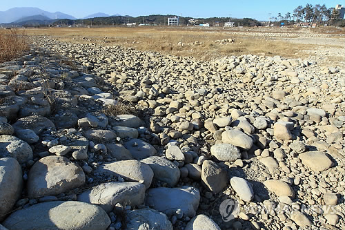 | △ 영동지방에 이어지는 겨울 가뭄으로 바닥이 드러난 속초시민의 식수원 쌍천. |