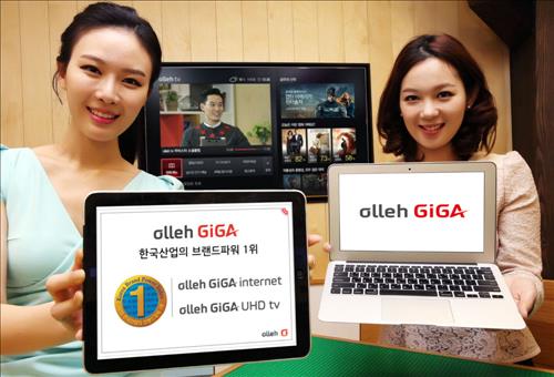 (서울=연합뉴스) 전성훈 기자 = KT[030200]는 한국능률협회컨설팅에서 주관하는 '2015 한국산업의 브랜드파워'(K-BPI)에서 '올레 기가 인터넷'과 '올레 기가 초고화질(UHD) TV'가 각각 초고속인터넷과 IPTV 부문 1위를 차지했다고 10일 밝혔다.