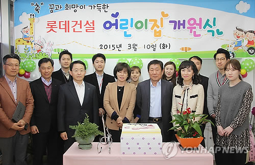 (서울=연합뉴스) 정성호 기자 = 롯데건설은 10일 서울 잠원동 본사 인근에 직장 보육시설인 '롯데건설 어린이집'을 개원했다고 밝혔다.