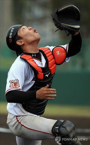 | △ 오키나와 스프링캠프 당시 한화 지성준의 훈련 장면.(연합뉴스DB) |