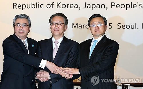 3국 외교장관 회의가 열리는 것은 지난 2012년 4월 이후 거의 3년 만이다.