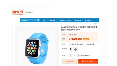 11일(현지시간) 영국 일간 파이낸셜타임스에 따르면 알리바바의 온라인 쇼핑몰 '타오바오'(淘寶) 같은 온라인 쇼핑몰과 오프라인 쇼핑몰에서 애플 워치 짝퉁들이 등장했다.