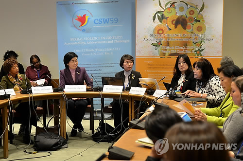 토론회는 '세계 여성의 날'(3월8일)를 맞아 유엔본부에서 열린 제59차 유엔여성지위원회의 부대행사로, '일본군 위안부' 문제에 대한 국제사회의 관심을 높이고자 한국의 여성가족부가 후원해 개최했다.