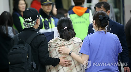 | △ 지난해 4월 16일 전남 진도 해상 침몰 여객선 세월호에서 구조된 학생들이 경기도 안산 고대안산병원에 도착, 진찰실로 향하고 있다. (연합뉴스 자료사진) |