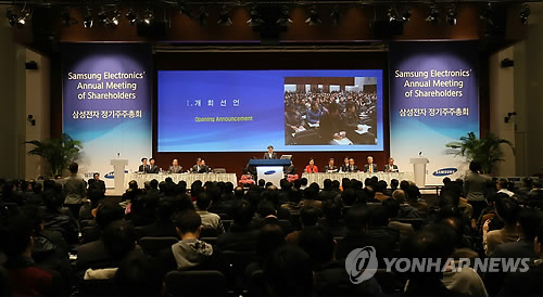 (서울=연합뉴스) 정준영 기자 = 삼성전자[005930]와 현대차[005380] 등 68개 상장사가 13일 주주총회를 열고 올해 정기주총 시즌의 막을 올렸다.