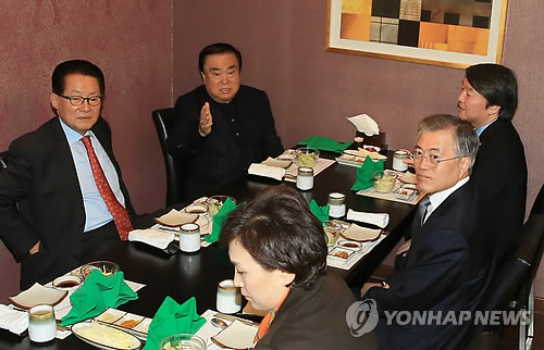 문재인 대표는 이날 문희상 김한길 박지원 안철수 의원 등 전직 대표단과 오찬을 함께 하며 과거 영수회담의 경험을 듣고 조언을 구했다.