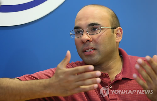 | △ 투수 류현진에 대해 말하는 자이디 단장 (글렌데일<미국 애리조나주>=연합뉴스) 황광모 기자 = 파르한 자이디 LA 다저스 단장이 13일(한국시간) 오후 미국 애리조나 글렌데일 캐멀백 랜치 LA 다저스 훈련장에서 가진 연합뉴스와의 단독 인터뷰에서 류현진에 대한 자신의 의견을 말하고 있다. 2015.3.14 hkmpooh@yna.co.kr |