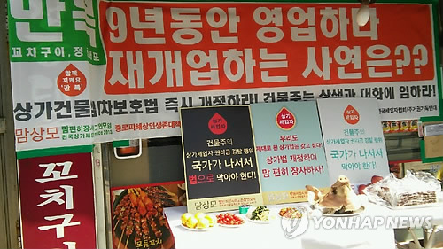 만복 사장 김선희(58)씨와 맘상모는 "상가권리금을 법제화하는 내용의 상가임대차보호법 개정안이 제때 통과됐더라면 이런 일은 없었을 것"이라며 목소리를 높였다.