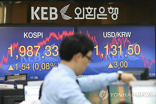 이날 코스피는 전날보다 1.54포인트(0.08%) 오른 1,987.33으로 장을 마감했다.