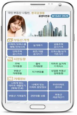 | △ 한국감정원이 제공하는 부동산 가격정보 앱 초기 화면 |
