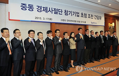 (서울=연합뉴스) 이웅 기자 = 코트라(KOTRA)가 17일 서울 삼성동 그랜드인터콘티넨탈호텔에서 박근혜 대통령의 중동 4개국 순방에 동행한 경제사절단의 성과를 점검하고 후속 지원방안을 논의하기 위한 '중동 순방 중소기업 경제사절단 참가기업 조찬간담회'를 개최했다.